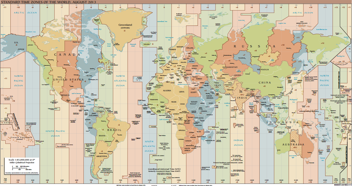 Les différentes zones horaires dans le monde sont définies aujourd’hui à l'aide d'un décalage fixe par rapport au temps universel coordonné (UTC). C’est la beauté de la chose, et nous sommes donc tous bien synchronisés.